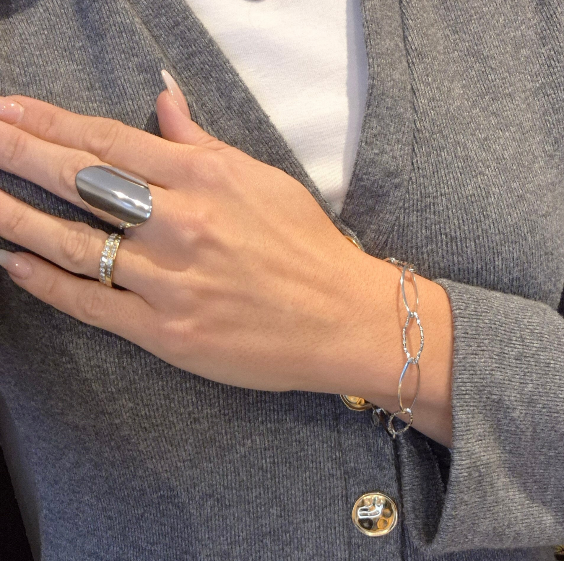 Bracelet sur chaîne composé de maillons alternés ovales dentelés et lisses.